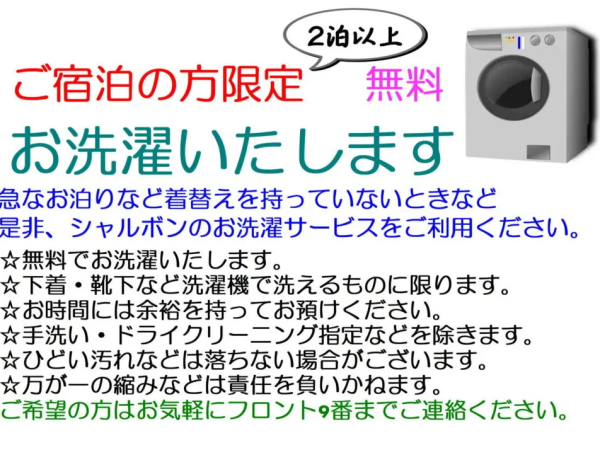 2泊以上のご宿泊の方限定の無料サービスです。