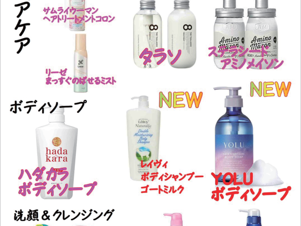 シャンプー・リンス・ヘアオイル、各種ご用意しました!無料でご利用いただけます