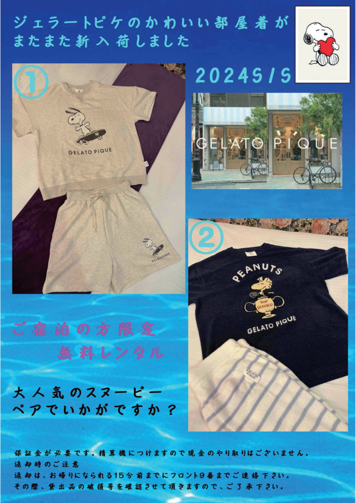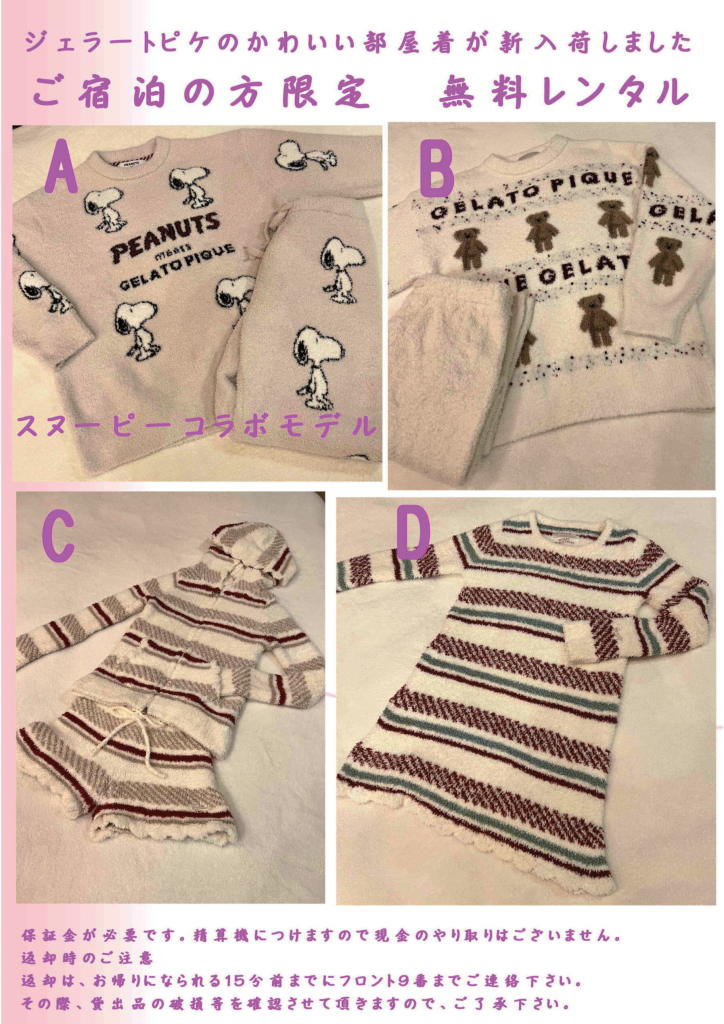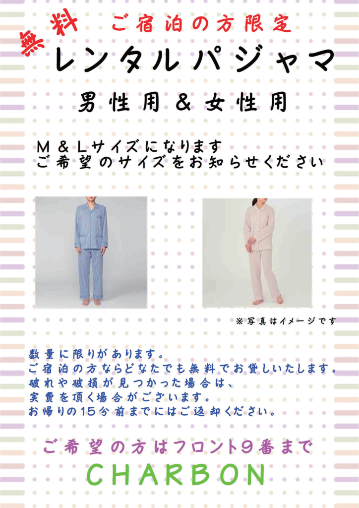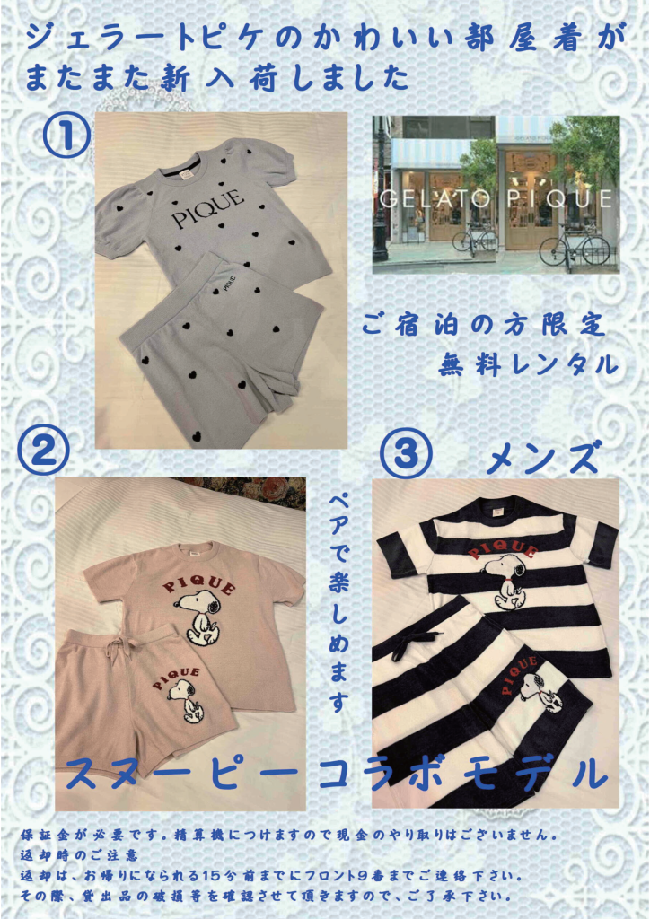 カップルでお揃いの部屋着を楽しめます☆もちろん無料!!