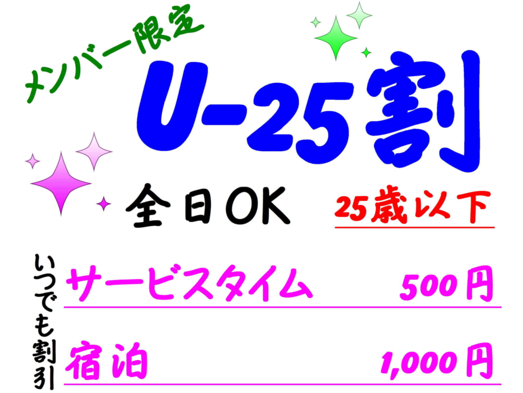 25歳以下のお客様限定のU-25割引プランです。お得な料金でご利用いただけます。学生証または年齢確認書類のご提示をお願いする場合がございます。